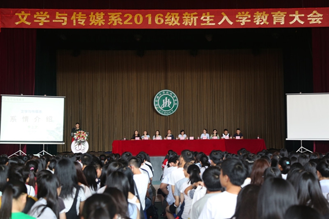 9月18日上午,文传系在综合馆举行了“2016级新生教育大会”,634名新生参加了大会。会上,孟颖书记对新生加入文传大家庭表示热烈的祝贺和欢迎,并对新生致以美好祝愿与殷切期望,同时也告诫了新生们要做好角色的转化,从紧张的高中脱离,投入到大学自由有目标的学习中,要确立一个目标,不要碌碌无为的过完四年;李上文主任统地向新生介绍了包括系部概况、师资结构、名师介绍、专业介绍、实践教学等方面,全方位的为新生展现了文传的教学与管理特色,同时也表达了希望新生们能把握好机会,在大学中找寻自己的人生价值,并提出了三点希望:今天的自立决定明天的强大,学会自立、融入城院;今天的造就决定明天的成就,学会学习、迎接挑战;今天的态度决定明天的高度,学会做人、勇于担当。