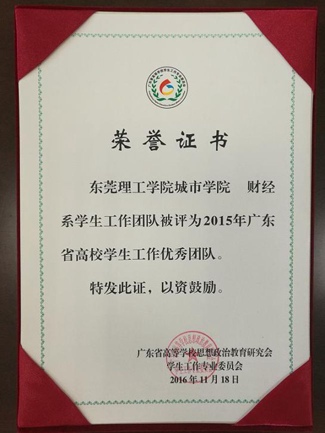 2016年12月14日-15日,广东省学生工作专业委员会年会暨高校实践育人研讨会在惠州学院举行,我院学生处处长杜鹏举参加会议。大会表彰了2015年度广东省高校学生工作先进个人、优秀团队、红棉奖及精品项目,我院学工团队喜获佳绩,其中财经系被评为“2015年广东省高校学生工作优秀团队”,管理系辅导员李梦丹负责的“真人图书馆”被评为第四届“高校学生事务管理精品项目”,财经系辅导员卢效坚被评为“2015年广东省高校学生工作先进个人”。