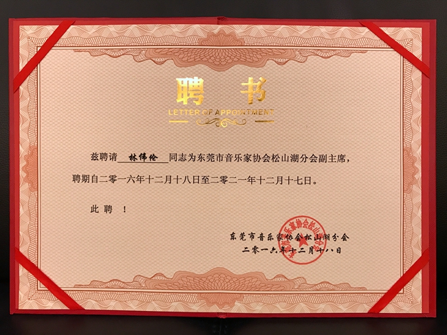 林伟伦老师当选第二届东莞市音乐家协会松山湖分会副主席
