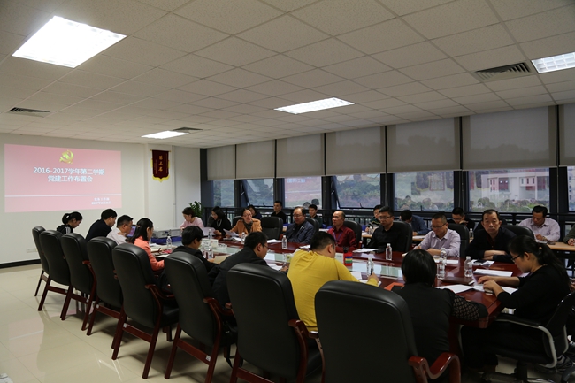 院党委书记王卫平强调:在新形势下,学院党委要全面贯彻党的十八大、十八届六中全会精神,要切实抓好总书记在全国高校思想政治工作会议上的重要讲话精神的传达学习和贯彻落实,积极创新学院党建工作,发挥政治核心作用。为此,学院在年前成立了党务工作部,加强力量,便于统抓统管,形成合力,按照党委的要求切实做好党建工作,有利于强化意识形态工作取得实效。