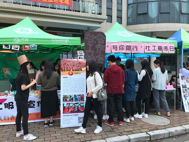 3月23日,学生处社会工作协会邀请了东莞市莞香花青少年服务中心等五家社会工作机构到我院开展宣传展示,以响应城院“与你同行”社工周活动,激发了同学们积极投身社会公益活动的热情。