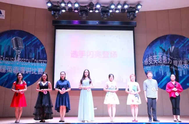 八位进入总决赛的选手闪亮登场,依次用流利的英语做简单的自我介绍。选手们流利的英语演讲、标准的发音、富有感染力的肢体语言,还有闪亮得体的服饰给选手们“助攻”,给评委老师及现场观众带来了一场听觉与视觉上的盛宴。