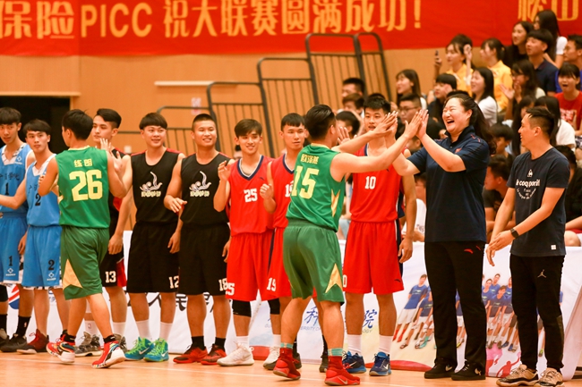 我院男篮10号黄明健、19号叶锐城和25号叶照晃以高额票数入选全明星球赛,加入由B组球队组成、广科主教练彭俊峰担任主帅、我院教练钱丽娜作为助教的“荣耀队”。尽管10号黄明健表现突出,为团队贡献了10分,但“荣耀队”最终以79:85不敌A组为代表的王者队。