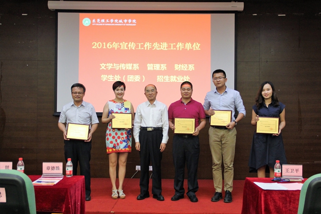 文学与传媒系等5个获得2016年度先进工作单位、管理系“工商模拟市场”等5个特色宣传工作、惠梦瑶等22位宣传工作先进个人,受大会的表彰和奖励。