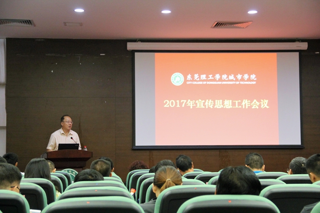 5月19日下午,东莞理工学院城市学院2017年宣传思想工作会议,在行政楼112会议室顺利召开。学院全体院领导,各单位负责人、分管宣传工作负责人、宣传联络员,各党总支(直属支部)书记、副书记和党务工作部全体成员参加了会议。会议由学院党委副书记章德胜主持。