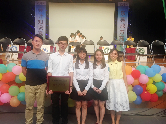 5月17日,由东莞市会计学会主办、东莞职业技术学院承办的“2017年东莞地方高校会计知识邀请赛”落下帷幕。我院代表队在财经系何文琴、黄庆泉两位老师的指导下,以总分第二名的好成绩获得大赛二等奖。