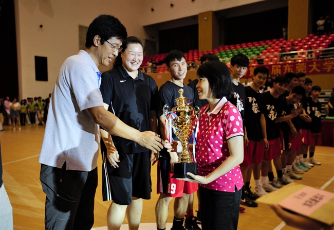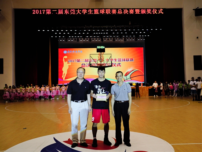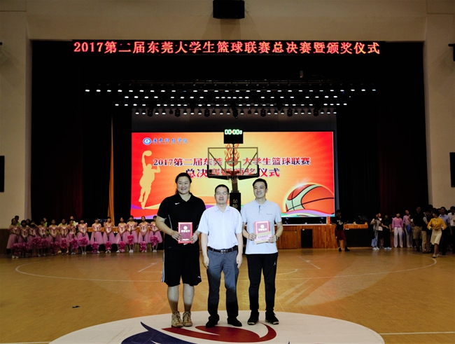大赛现场举行了颁奖仪式。我院男篮荣获第二届东莞大学生篮球联赛冠军,广东科技学院队获得亚军,东莞职业技术学院队获得季军。此外,我院钱丽娜教练获得优秀教练员奖,19号叶锐城获得总决赛MVP(最有价值球员奖),体育教学部获得优秀组织奖等。
