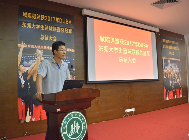6月15日下午,我院男子篮球队获东莞大学生篮球联赛总冠军总结大会在行政楼112举行。王卫平、章德胜、高香林、林江龙等院领导和各院系(部)主任、体育教学部全体教师参加了会议。
