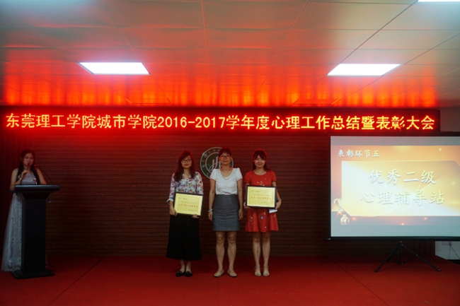 一批先进集体和先进个人受到大会表彰。财经系和管理系等两个二级心理辅导站被授予“优秀二级心理辅导站”荣誉称号;计信系和金贸系联合举办的第二届心理微电影大赛荣获优秀精品培育项目一等奖;计信系肖桓健等50位学生心理干部荣获优秀心理干部荣誉称号。