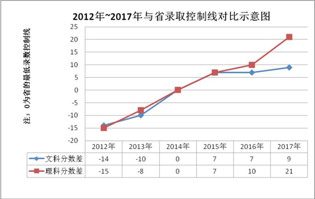一是省内普通类招生再上新台阶,文理录取分数线再创新高,其中理科录取分数最高为449分,高出省线89分,文科录取分数最高为479分,高出省线61分,生源质量大幅提升。