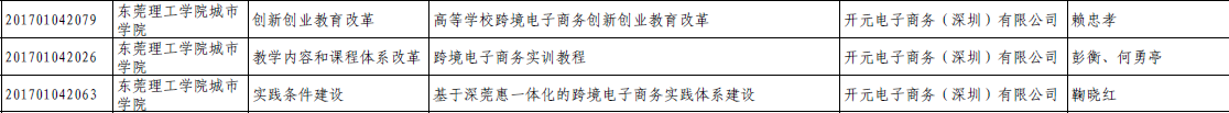 8月11日,教育部高教司公布了2017年度(第一批)产学合作协同育人项目获批立项名单(教高司函〔2017〕37号),我院共有3项本科教学项目获得立项:赖忠孝教授主持的“基于深莞惠一体化的跨境电子商务创新创业教育改革”获批创新创业教育改革项目;鞠晓红讲师主持的“基于深莞惠一体化的跨境电子商务实践体系建设”获批实践条件建设项目;彭衡讲师和何勇亭讲师联合主持的“跨境电商实训教程”获批教学内容和课程体系改革项目。