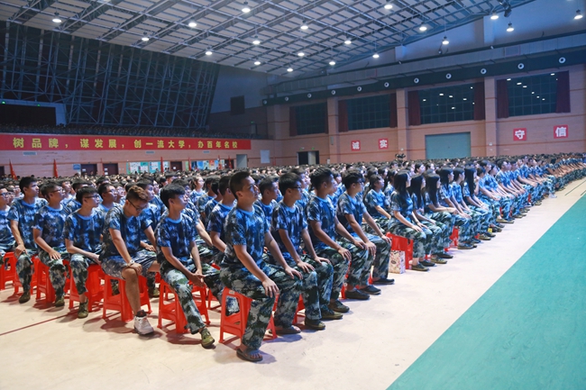 9月17日晚,新生国防安全教育知识讲座在综合馆开讲。新生军训承训部队政治教导员、军训团副团长罗强龙少校作了“前进中的人民海军”的主题报告。