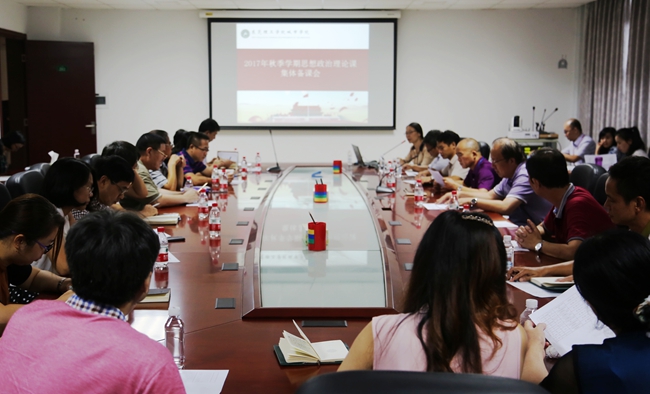 9月19日下午,学院党委在行政楼212会议召开2017年秋季学期思想政治理论课集体备课会。院长、党委书记王卫平,党委副书记章德胜,各系主任、党总支书记及思政部部分教师参加了集体备课会。党务工作部副部长叶凯贞主持了会议。