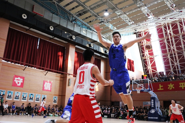 第二节,落后的金贸系加大“2-3”联防力度,随着4号尹伟权命中一记稳定军心的3分球而开始渐入佳境,打出一波17:1的小高潮。上半场战罢,金贸系队以38:21领先。