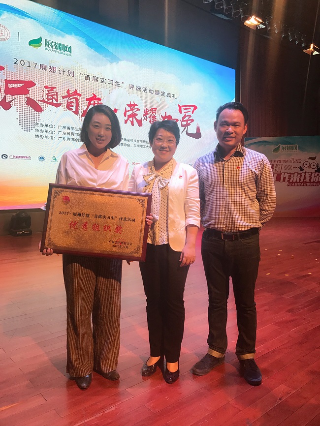 11月12日,由广东省学生联合会主办,省青年创业就业基金会等单位承办的2017?展翅计划“首席实习生”评选活动决赛暨颁奖典礼,在华南理工大学广州学院举行。