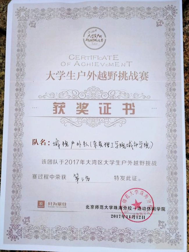 经过队员们齐心协力、奋力拼搏,最终我院户外代表队获得季军。