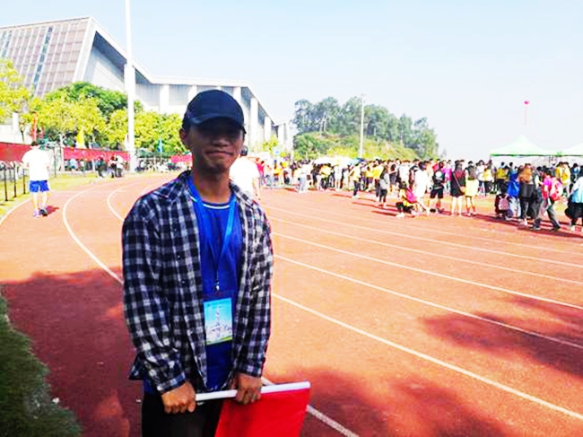 在结束110米跨栏后,梁伟烽匆匆赶往男子1500米长跑的队列。