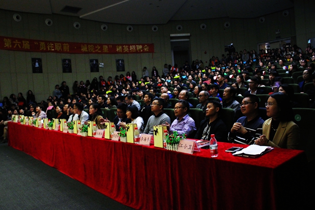 11月23日晚,我院第六届“勇往职前,城院之星”精英招聘会决赛在学术报告厅举行。院领导王卫平、章德胜、高香林、黄兢,广东鸿发教育文化集团有限公司副总经理韩春华及各企业代表、各处室院系负责人出席了本次比赛。