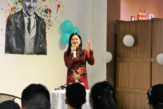 蔡秋菊导师特别邀请了合作伙伴吴秋霞女士上台分享,向同学们讲述与马卡龙邂逅的故事,向同学们对生活的美好祝愿。