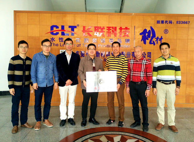 东莞长联新材料科技股份有限公司是我市一家高科技上市公司,成立于2009年11月,注册资本4290万元,于2013年1月完成股改。公司拥有一个由教授、博士、硕士组成的专业研发团队和多项环保水性印花胶浆的科技成果及发明专利,建立了环保水性印花材料研究开发工程中心,被中国网印及制像协会评为“中国网印30年最具影响力企业”和“中国网印30年科技创新企业”,先后被授予“广东省民营科技企业”和“广东省高新技术企业”称号。