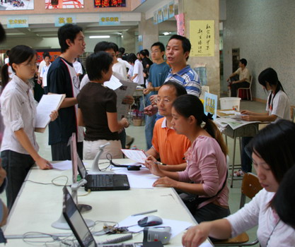 记者在校园里看到,在学院的统一调度安排下,迎接接待等各项工作井然有序。报到注册现场,新生咨询、报到、缴费、户口迁移以及家长接待等工作都在有条不紊地进行。学院各系也成立了新生接待点,为新生报到、住宿等工作提供帮助和服务。
