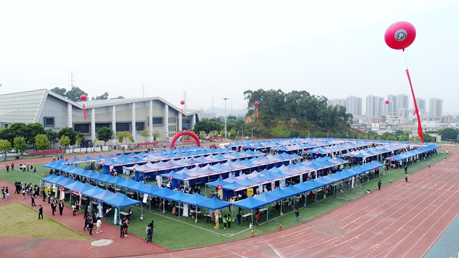 今日下午,我院2018届毕业生大型校园招聘会在运动场举行。300家企业携15000多个就业岗位前来选才纳贤,共吸引了我院及外校应届毕业生6000多人前来应聘。