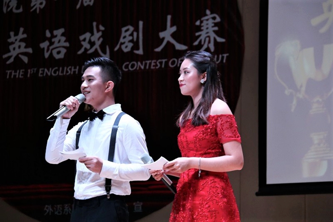 这次比赛是由院团委、外语系联合举办,经过初赛角逐,从70多支来自各院系的队伍中,选拔出来8支队伍进行决赛。决赛模拟奥斯卡颁奖典礼的形式,将8支队伍的剧目按照体裁分为最佳外国童话、最佳中国戏剧、最佳外国戏剧三类进行。