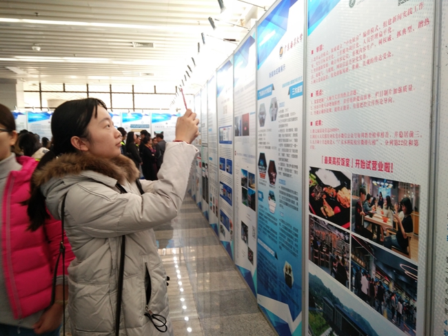 我院官方微信公众号受邀参展。展出的特色推文《城院最美饭堂》吸引了与会人员的关注。