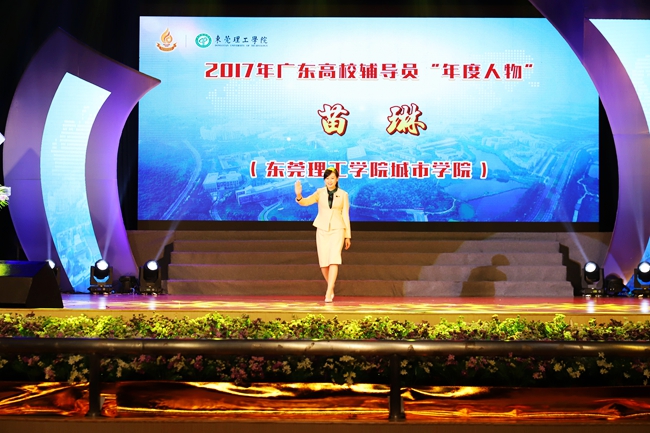 元月7日,在第七届广东高校辅导员职业能力大赛暨2017年广东高校辅导员“年度人物”评选活动总结晚会上,东莞理工学院城市学院文学与传媒系党总支副书记、辅导员苗琳老师凭借过硬的政治思想素质、爱岗敬业的职业精神、深厚的专业理论、突出的职业能力和良好的职业素养,斩获了2017年广东高校辅导员“年度人物”荣誉称号。