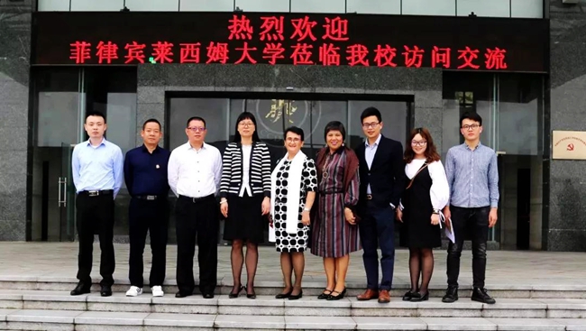 周庆副院长、港澳台事务办主任陈峰等热情接待了菲律宾莱西姆大学客人。双方进行了座谈,介绍了两校的有关情况,就短期交换生、本硕连读项目、夏令营活动和来华留学生等合作事宜进行了洽谈。