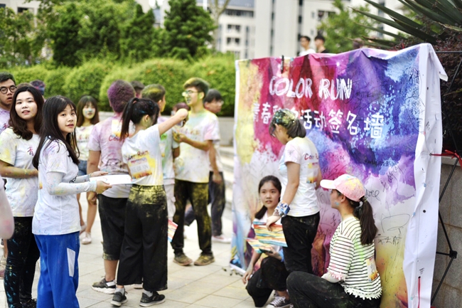 5月17日下午,“青春彩跑”跑步活动在映月广场举行,250多名同学参加了彩跑活动。