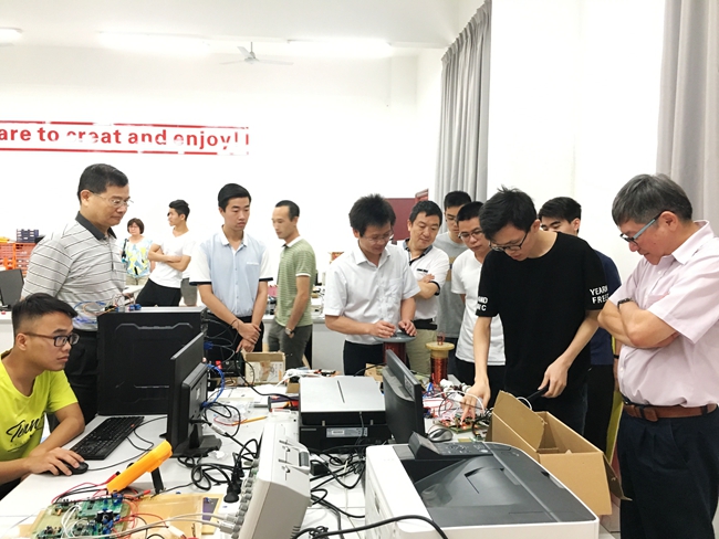 在电子工程与智能制造学院院长陈中政教授的陪同下,周至宏教授与该院全体教师及学生代表进行了座谈。双方就人工智能技术的发展与应用、教师科研课研等方面进行了交流与探讨。周至宏教授还参观电子工程与智能制造学院实验室,与师生进行交流导。