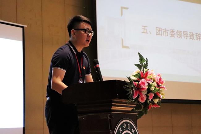 孙若丁副部长为大会致辞,他代表团市委对出席大会的全体代表、老师表示亲切的问候和良好的祝愿,并祝大会顺利召开。