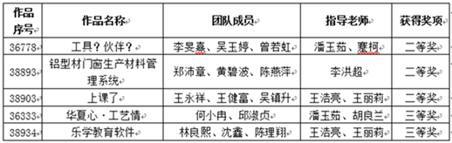 今年全省共898个作品报名参加比赛,共有163个作品入围决赛。我院组织了7支队伍、20名同学参加本次比赛,其中由计信系李洪超、潘玉茹、王浩亮、蹇柯、王丽莉等老师指导的5支代表队取得了二等奖3项、三等奖2项的好成绩。据悉,荣获二等奖的3支队伍获得了在暑假期间举行的全国计算机设计大赛的参赛资格。
