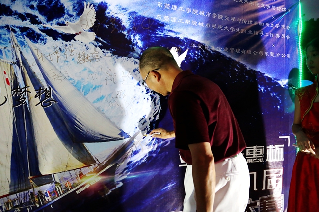 平安普惠企业管理有限公司东莞分公司总经理刘祖英、东莞安家众房网置业投资有限公司总经理助理邓斯洋,学院院长王卫平,副院长黄兢和各院系领导观看了比赛。