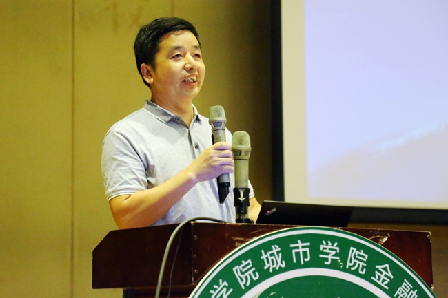 高香林副院长出席讲座并致辞。他希望同学们在本次与专业知识紧密联系的讲座中,有所收获,能进一步了解证券交易知识,并积极参与互动。