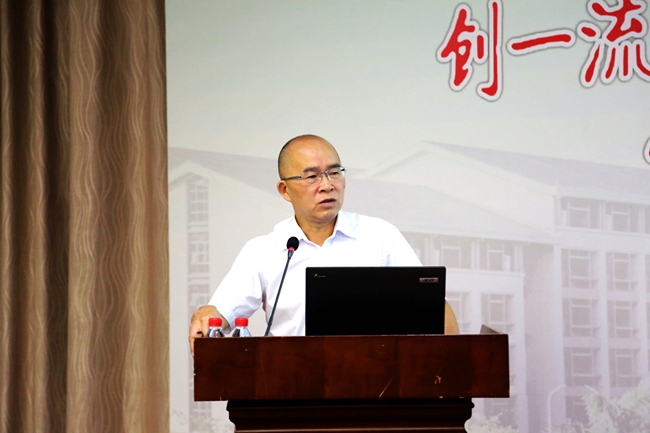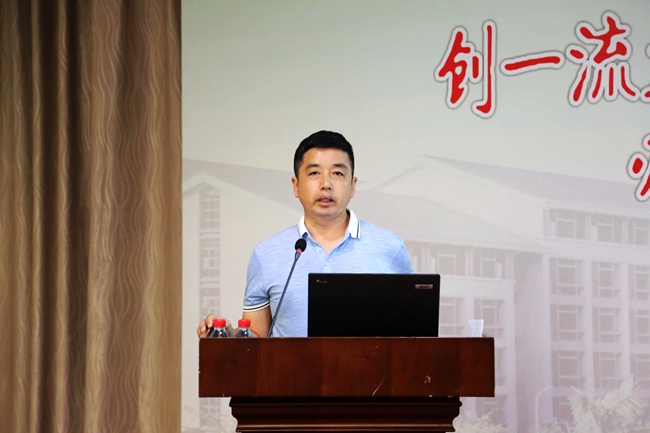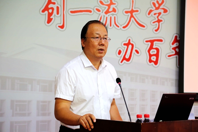 院领导章德胜、高香林、黄兢、周庆、刘玉侠分别就各自分管的工作作了报告,对2017-2018学年的工作进行了总结回顾,对新学年的工作思路及重点进行了通报。