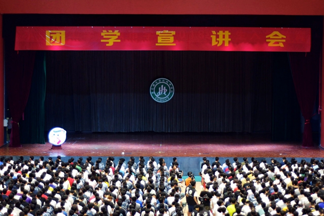 连续多天紧张严肃的军训,迎来了欢快时光!9月12日晚,一场别开生面的2018级新生团学宣讲会在综合馆举行。