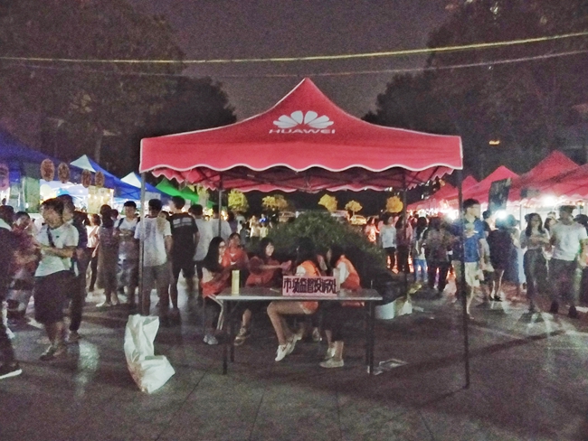 在今晚这众多美食摊位之中,“胶己人小吃”的摊位前总是挤满了人。同学们用那地道的潮汕口音问道:“我要一份潮汕牛肉丸呀。”这情形倒像极了潮汕的美食街。
