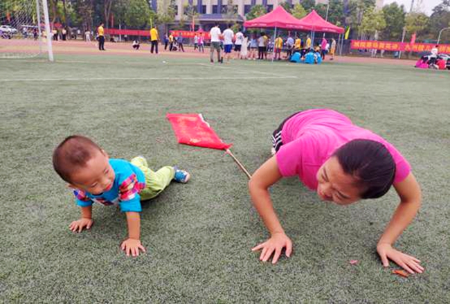 看,站着的他挥舞着红色的大旗,小小的身子里蕴藏着大大的力量;蹲下的他做起了俯卧撑,一旁的妈妈还纠正了小不点的姿势。看来,这是个积极响应运动会“我因运动而飞扬,城院因我而精彩”口号的城院小小健将!(大学生实习记者 钟帛玲)