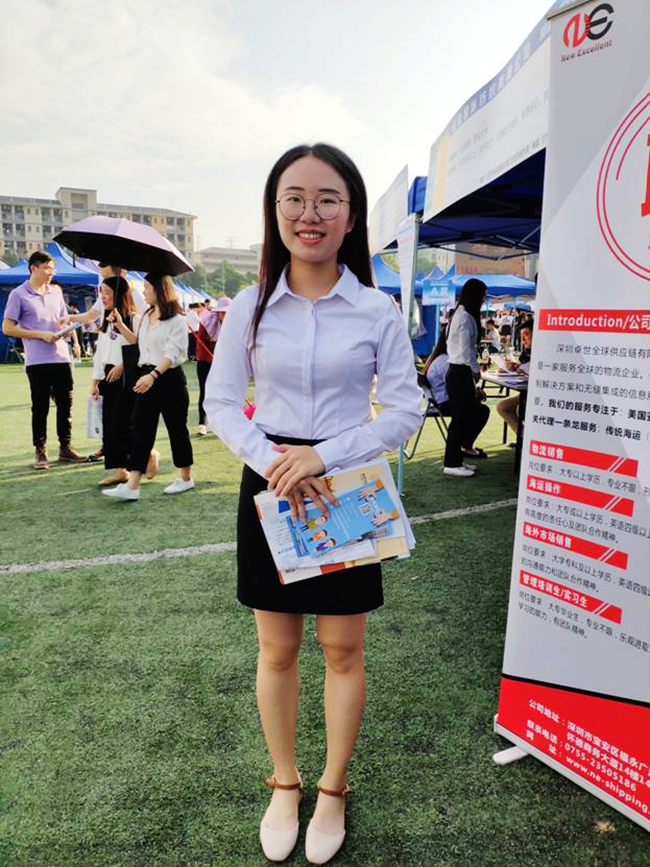 2015级新闻1班的刘秀容同学自信满满,早早来到招聘现场。记者了解到,在校期间刘秀容同学做足了充分的准备,事先有了解自己感兴趣的企业的背景,为了增加工作经验,平时也有去实习。