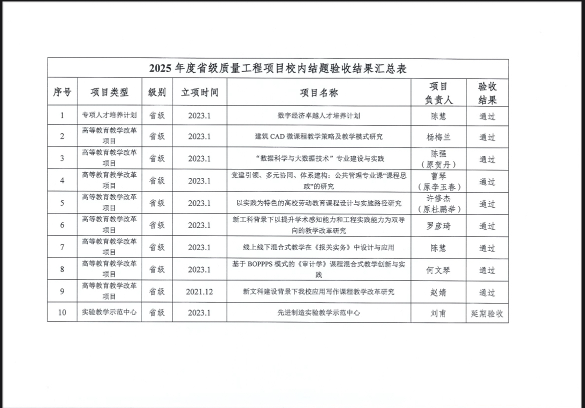 关于2025年度省级质量工程项目校内结题验收的结果公示