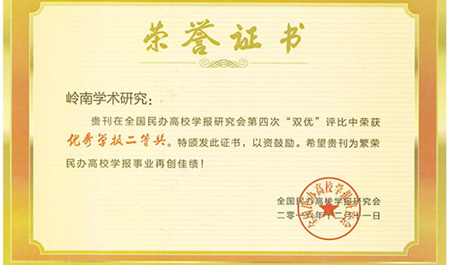 《岭南学术研究》获全国民办高校优秀学报二等奖