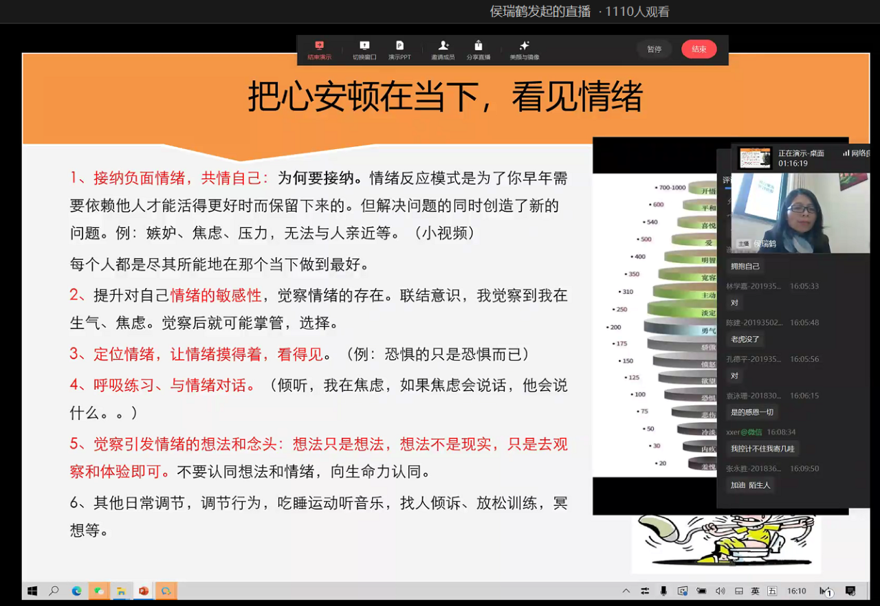 受疫情影响,我校学生无法正常返校学习,这对大学生的心理带来很大的挑战,为了让广大同学们更好地面对疫情,2022年4月2日下午,我校特邀请了中国人民大学心理专家侯瑞鹤副教授为城院学子做了题为《把心安顿在当下,拥抱不确定》的专题心理讲座。本次讲座通过企业微信直播方式进行,总共吸引了1400名师生聆听学习。