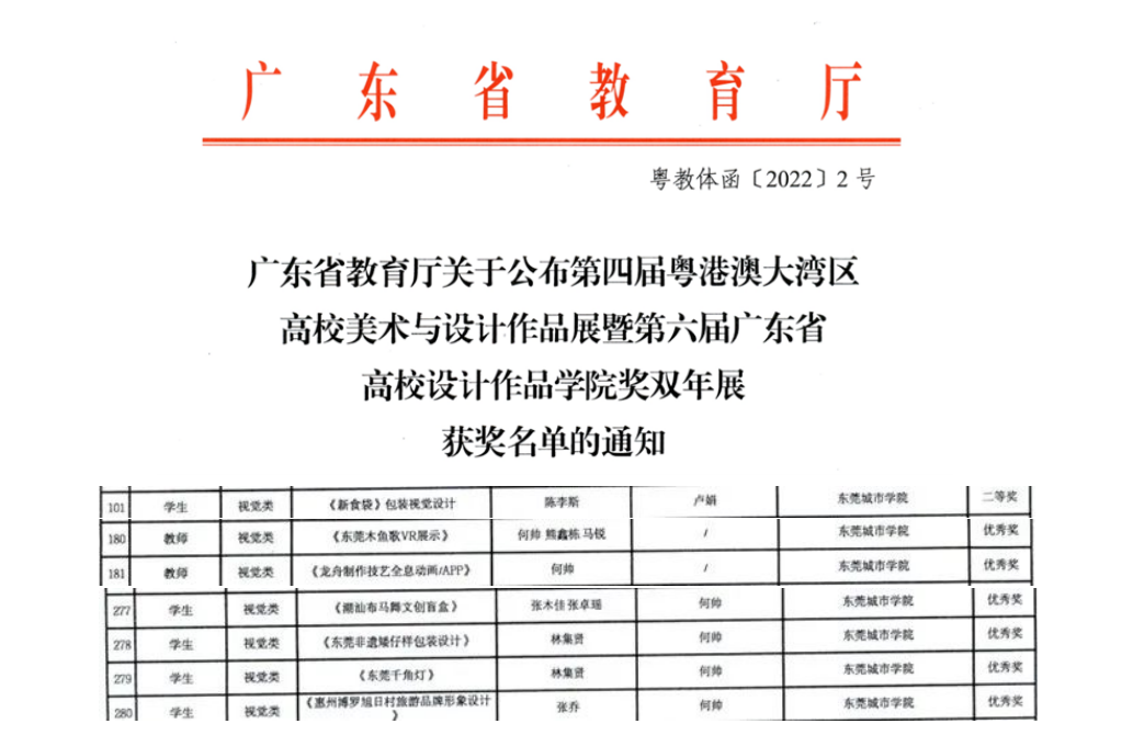 近日,广东省教育厅发布了《广东省教育厅关于举办第四届粤港澳大湾区高校美术与设计作品展暨第六届广东省高校设计作品学院奖双年展的通知》,我校创意设计学院2019数字媒体艺术专业学生陈李斯作品《新食袋包装视觉设计》获得二等奖一项。创意设计学院何帅副教授2件作品以及指导的4件学生作品获得优秀奖。我校还获得了优秀组织奖。