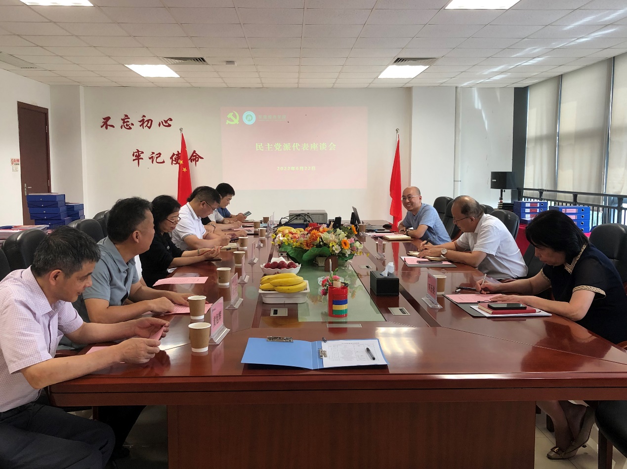 6月22日下午,我校在行政楼407会议室召开了民主党派代表座谈会,校党委书记章德胜、党委副书记、副校长刘玉侠和8名民主党派代表参加了座谈会。座谈会由党委统战部综合科科长陈东汉主持。