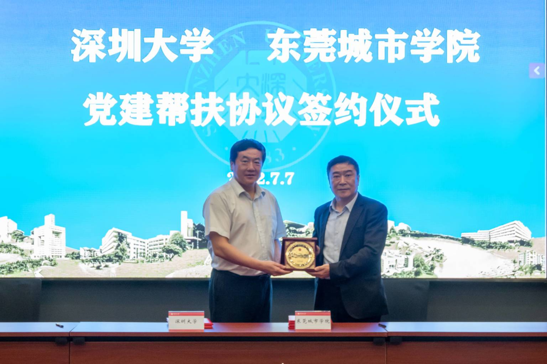 交流座谈结束后,深圳大学党委副书记范志刚与我校党委书记章德胜签署党建“组团式”帮扶协议。