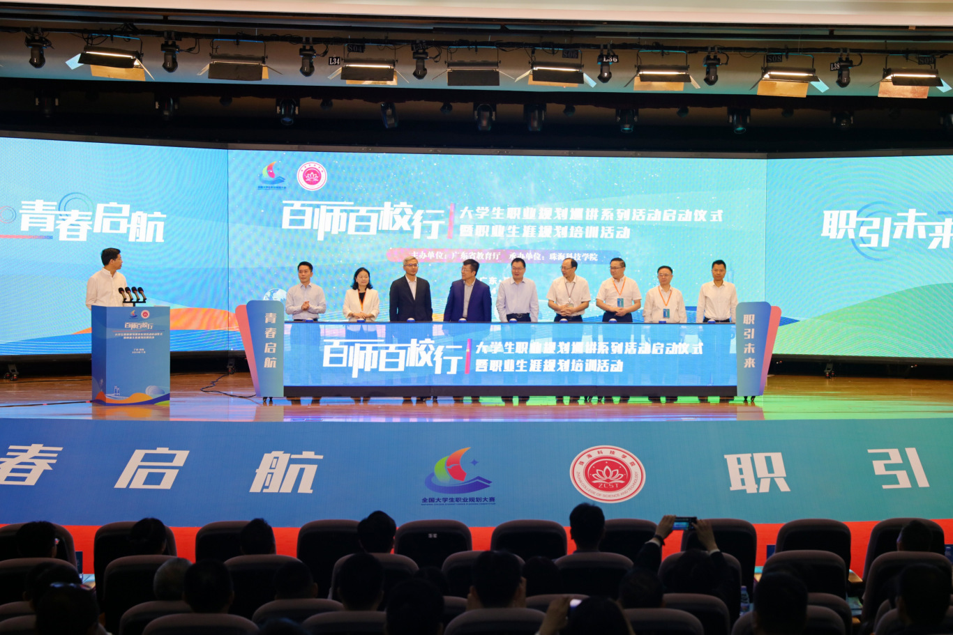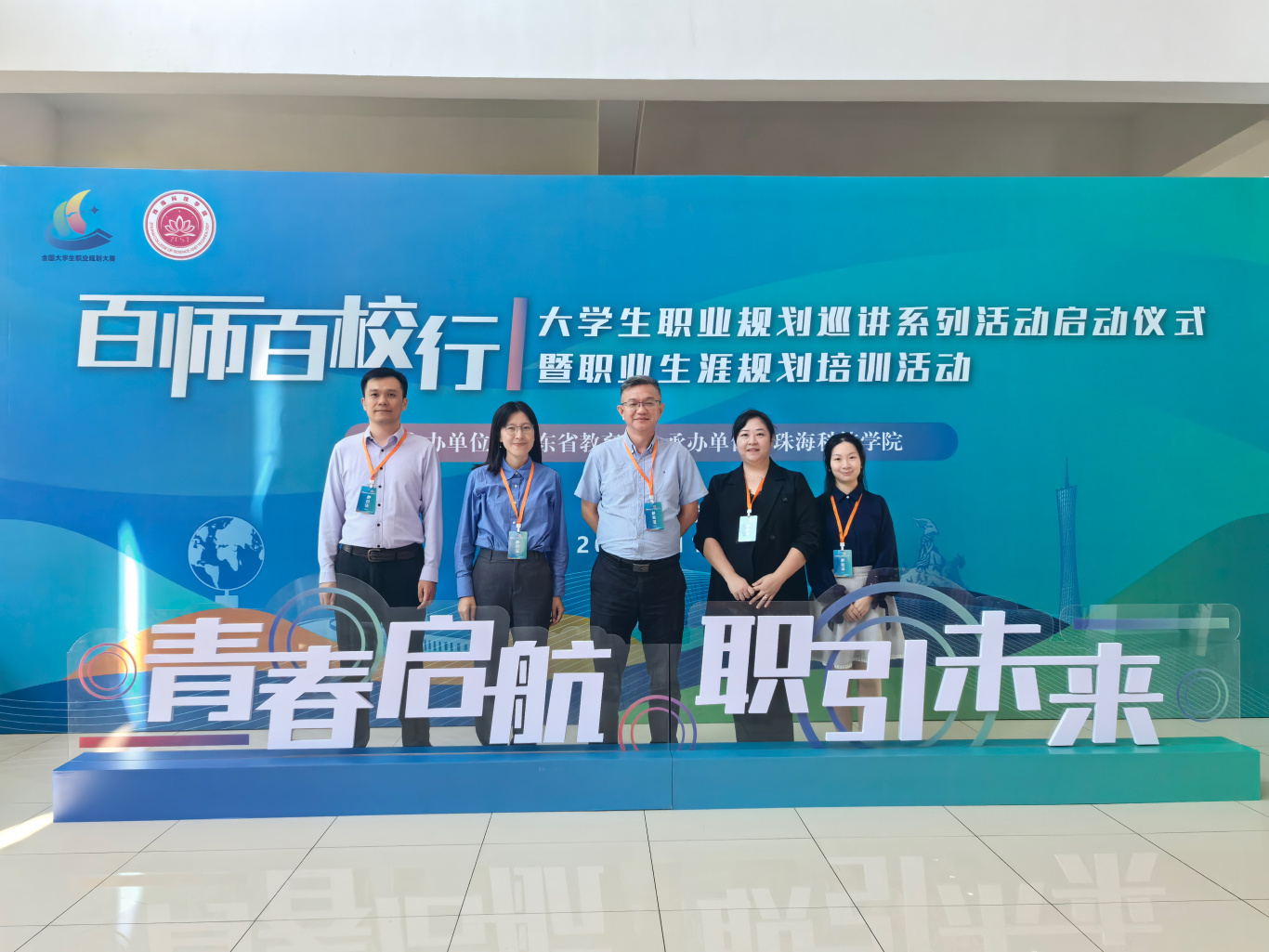 “百师百校行”大学生职业规划巡讲系列活动是重要的同期内容,贯穿于省赛全过程。该活动启动仪式暨职业生涯规划培训活动于11月7日上午在珠海科技学院举行。广东省教育厅党组成员、副厅长程大欣,全国就指委职业生涯教育与就业指导专家组副组长、高校毕业生就业协会副会长、二级研究员刘铸,广东省教育厅学生就业创业处处长周昭国,广东省高等学校毕业生就业促进会副会长林伟坚以及全省高校分管就业校领导、就业职能部门主要负责人,负责职业生涯规划教学和指导的教师共计400余人出席活动。东莞城市学院副校长康贤刚、学生部副部长(主持工作)林蓉、创新创业学院副院长(主持工作)陈文丽、就业中心副主任都振华以及就业中心老师罗丽斯代表我校出席。