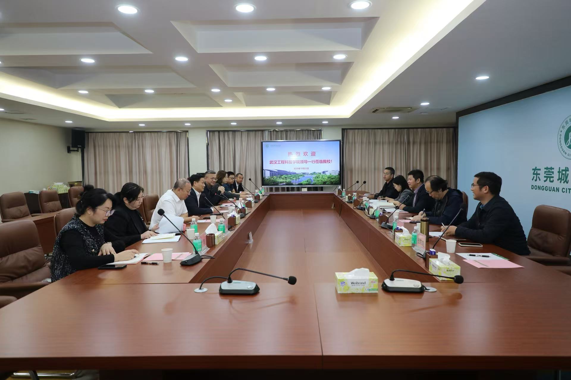 10月23日,武汉工程科技学院副董事长、党委副书记、常务副校长王加青,发展规划处处长甘巍,人事处处长彭娟等一行到我校访问交流。我校执行校长方伟华,党委副书记、副校长康贤刚及相关学院院长、部门负责人出席座谈会。