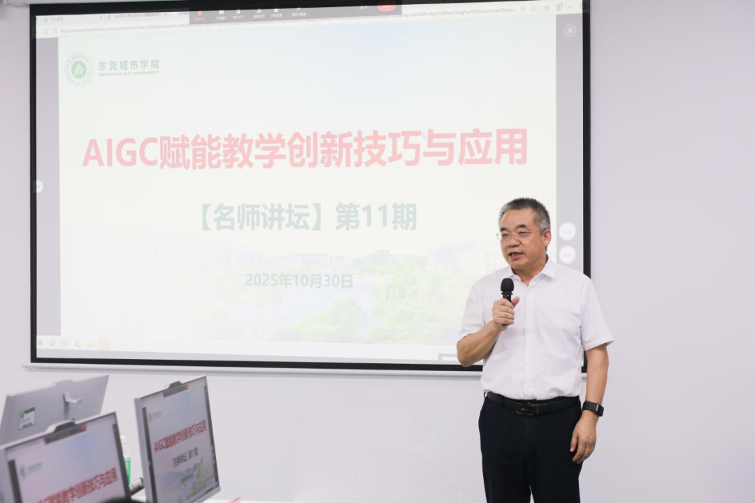 同时,为加深教师们对AI智能体技术的理解,陈主任现场以“东莞城市学院招生宣传智能体”为例,完整展示了从角色设定、插件配置到知识库集成的全流程,生动呈现AIGC在教育宣传与学生服务中的落地潜力。